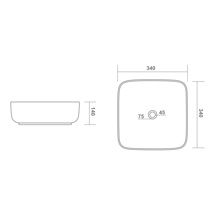 L - 340 W - 340 H - 140mm (14"x14"x6")