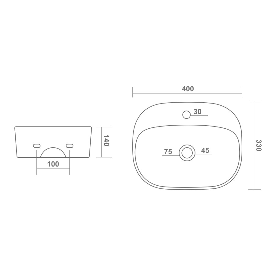 L - 400 W - 330 H - 140mm (16"x13"x6")