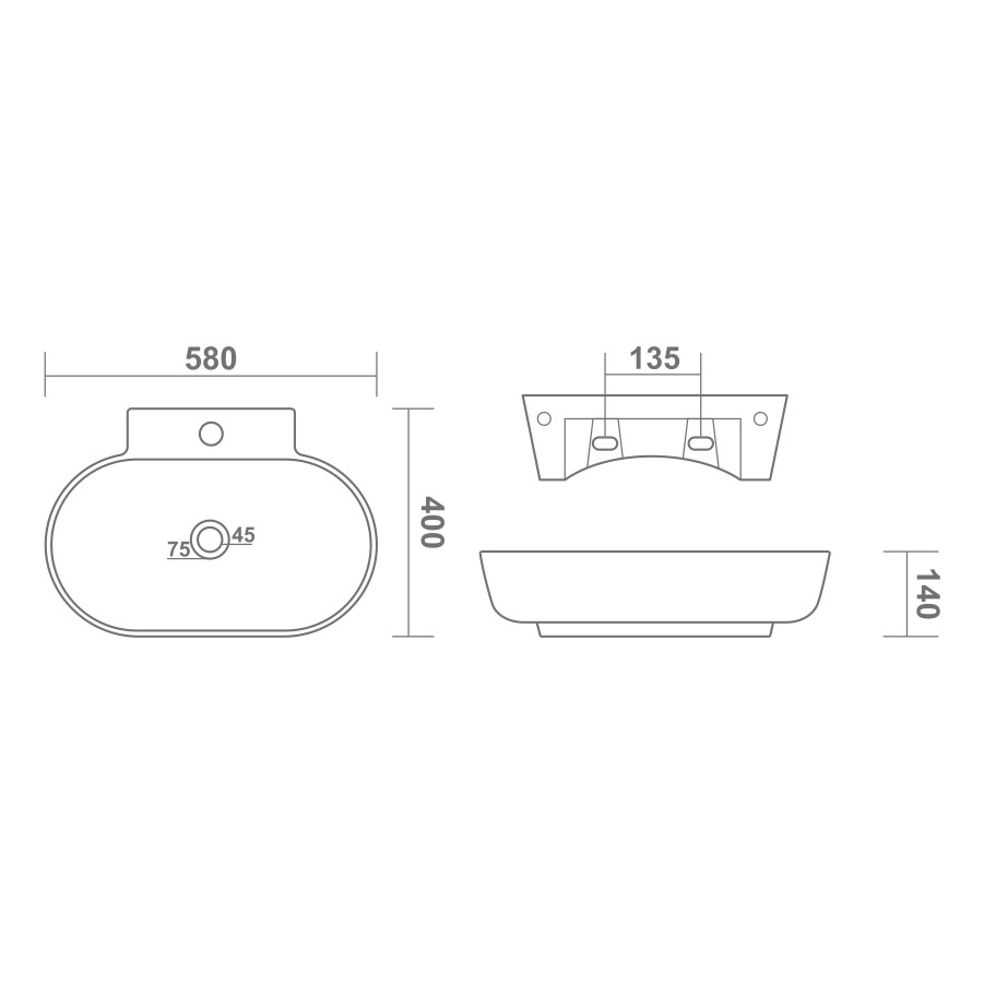 L - 580 W - 460 H - 140mm (23"x18"x6")