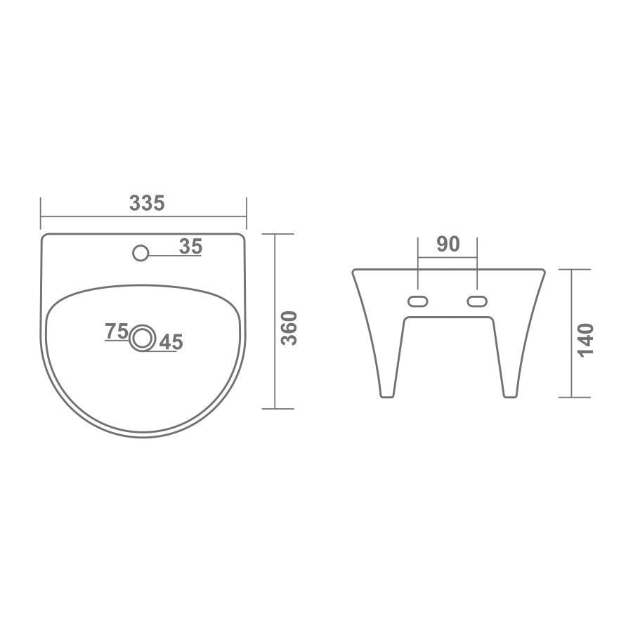 L - 360 W - 335 H - 140mm (14"x13"x6")