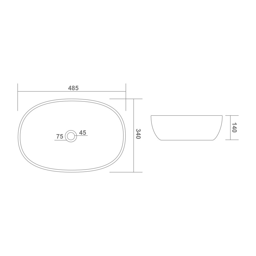 L - 485 W - 340 H - 140mm (19"x13"x6")