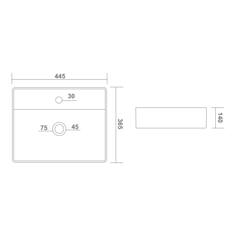 L - 445 W - 365 H - 140mm (18"x14"x5")