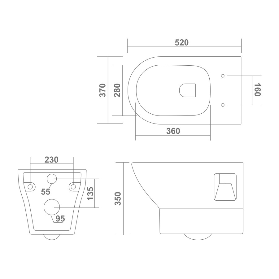 L - 520 W - 370 H - 350mm (21"x15"x14")