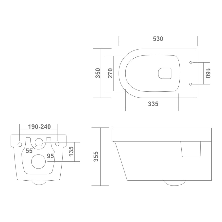 L - 530 W - 350 H - 355mm (21"x14"x14")