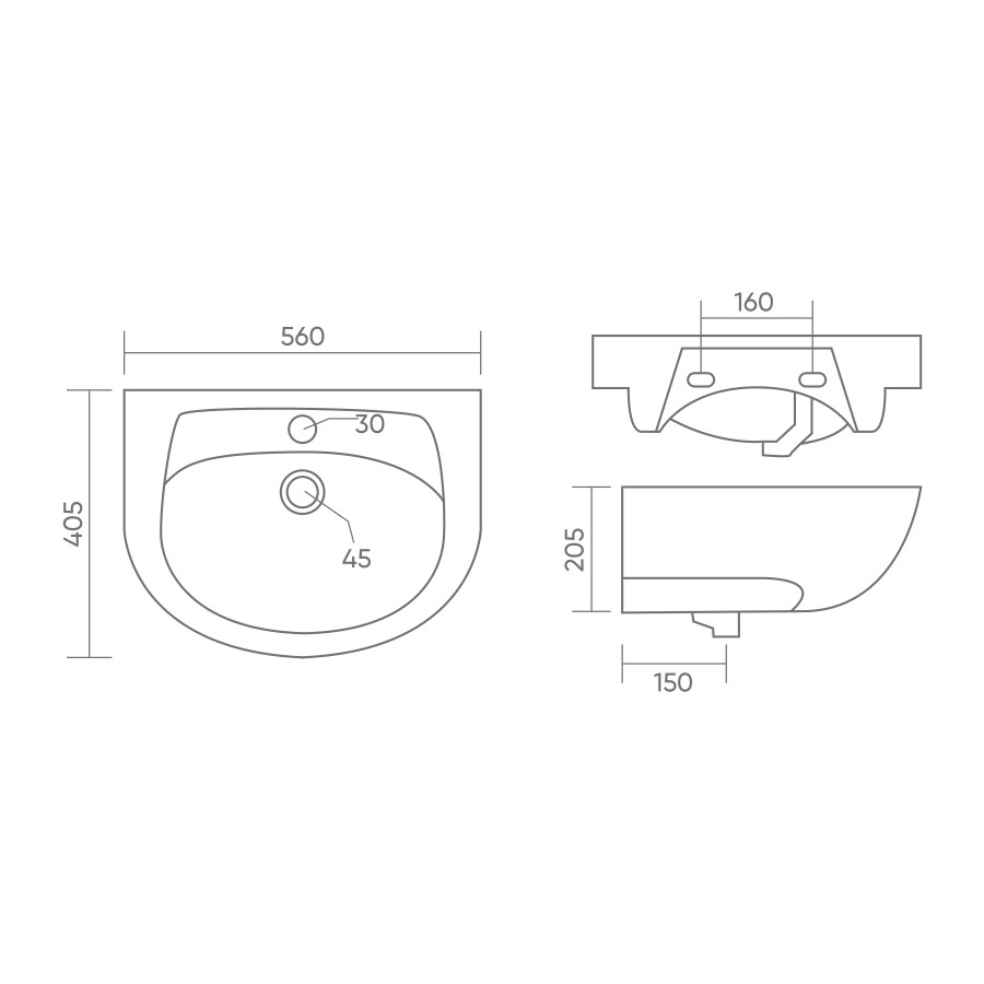 L - 560 W - 405 H - 205mm (22"x16"x8")