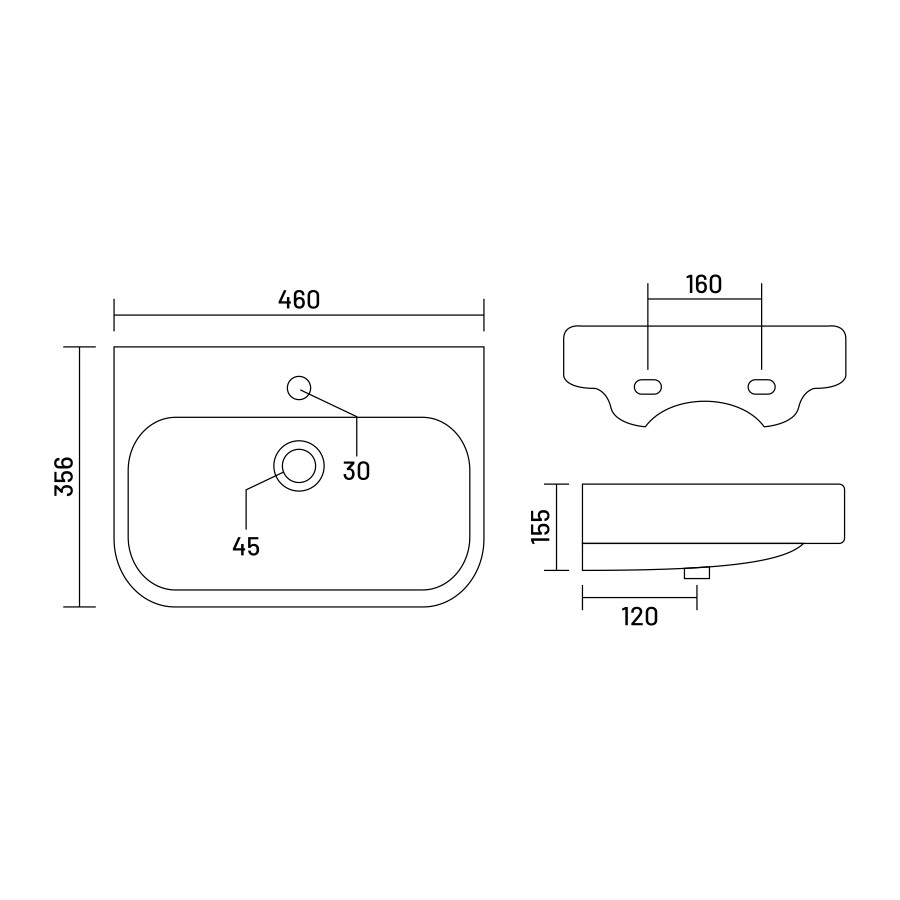 L - 460 W - 356 H - 155mm (18"x14"x6")