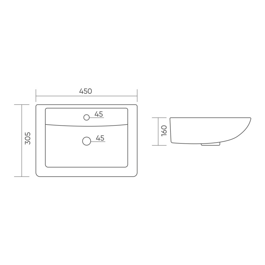 L - 450 W - 305 H - 160mm (18"x12"x6")